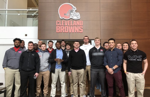 Muskingum University students majoring in Athletics Communication and Sport Administration visited the headquarters of the National Football League’s Cleveland Browns, where they spent the day meeting with Browns’ front office executives.